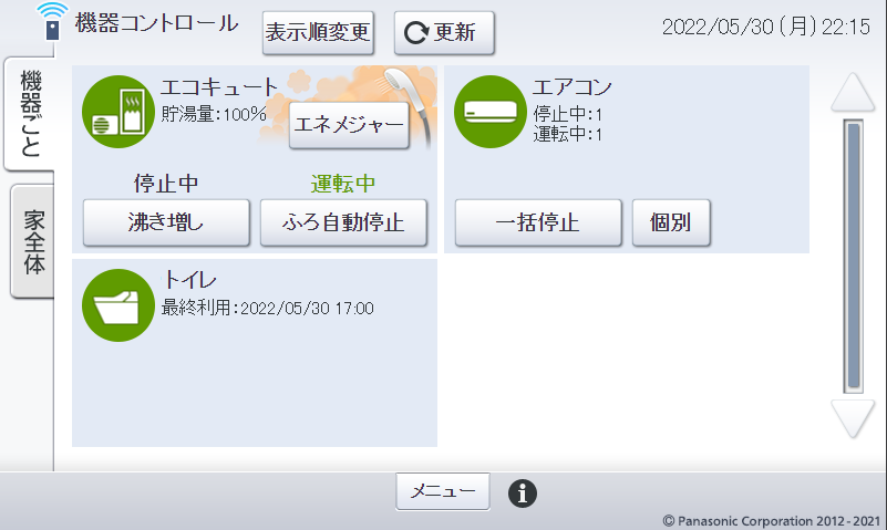 エコキュートは、AiSEG2に接続しなくても、スマホアプリで同様のことができますので、AiSEG2に接続するのは消費電力の確認ぐらいでしょう。AiSEG2画面で、一部、湧き増しなどのコントロールができますが、あえてAiSEG2でやることはありません。エコキュートはHEMS対応といってもその程度です。