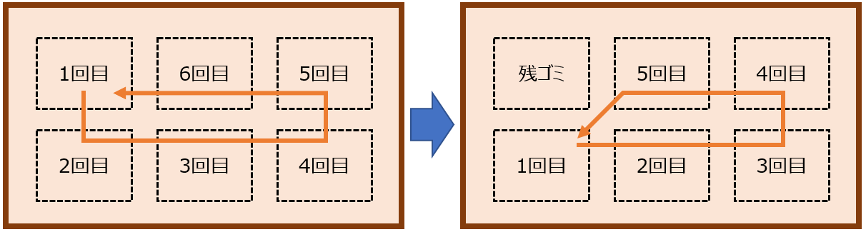左上のエリアを残ゴミエリアとして、各回を掘り返した際に残っていたゴミをこのエリアに再度投入するようにしました。各回残っているゴミは多くないので、残ゴミエリアもいっぱいになることなくうまく回していけるのではないかと思っています。